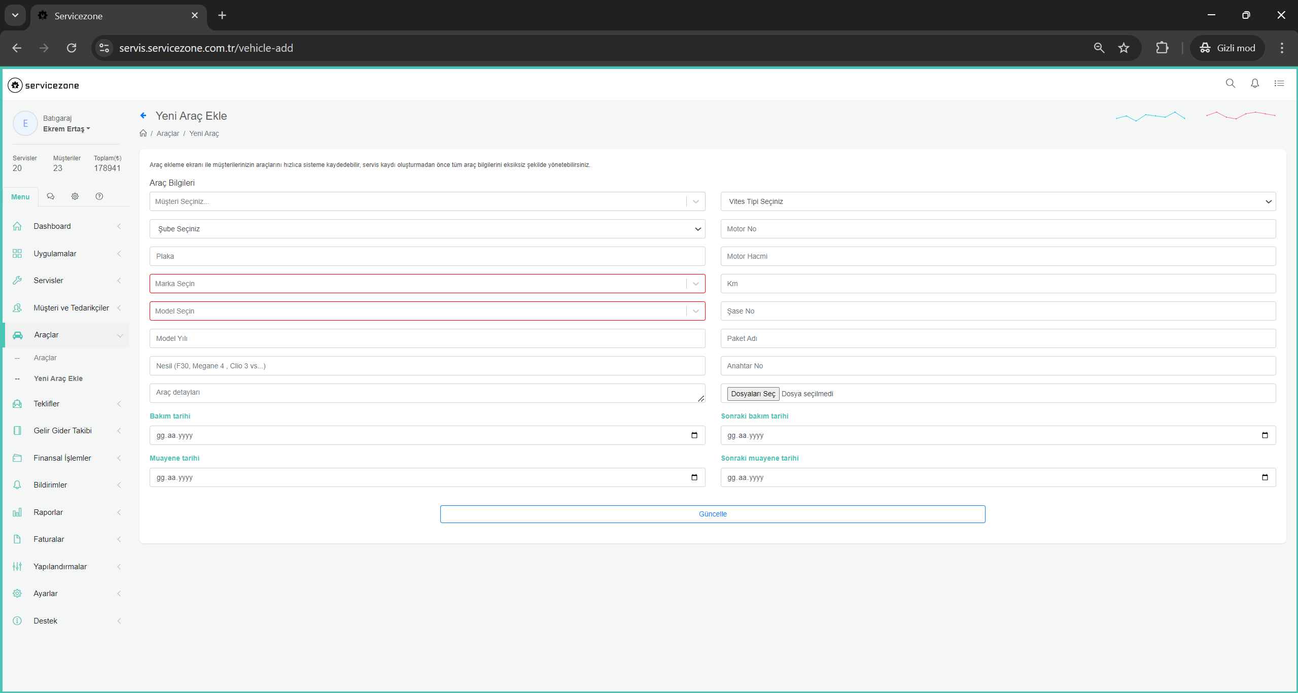 ServiceZone - Oto Servis İşletme Yönetim Platformu