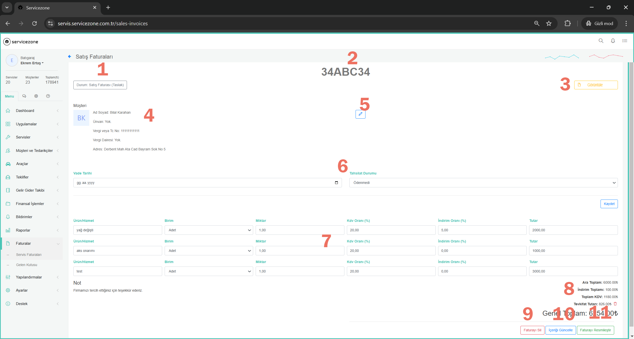 - Fatura silindğinde servis detayında tekrar oluşturulabilir.